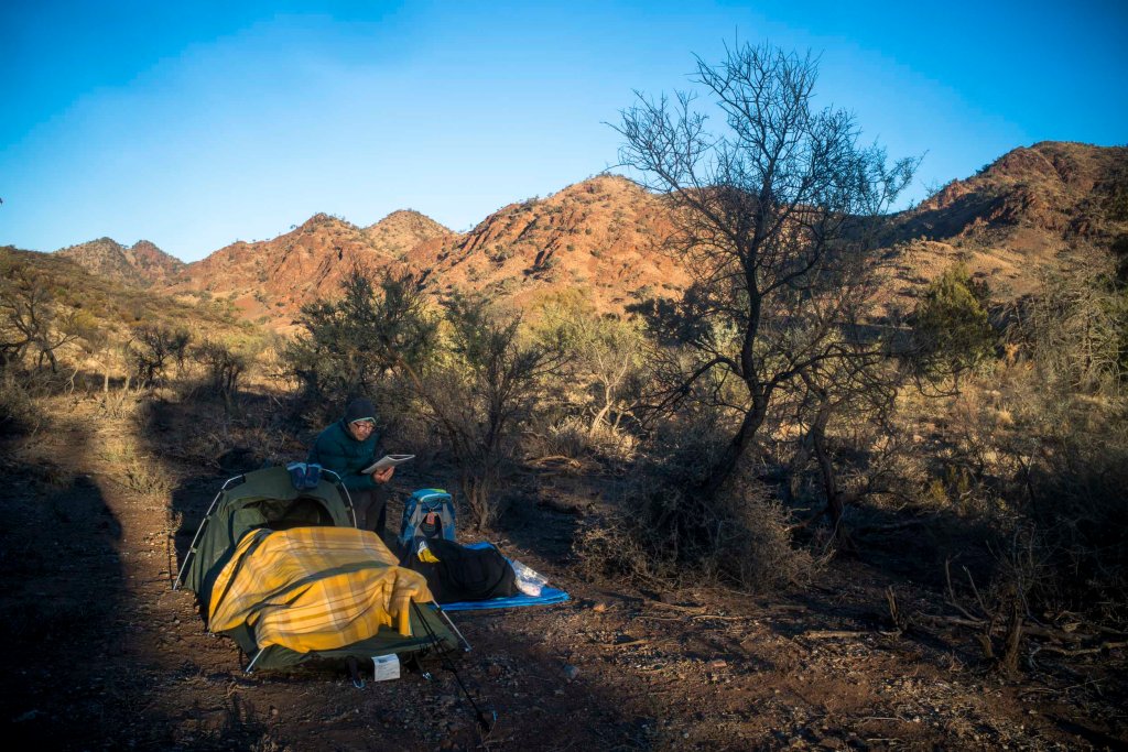The next day — day 3 — we walked past the Mawson Plateau and camped in a creek bed on the Mt Freeling (pastoral) Station. It was destocked.