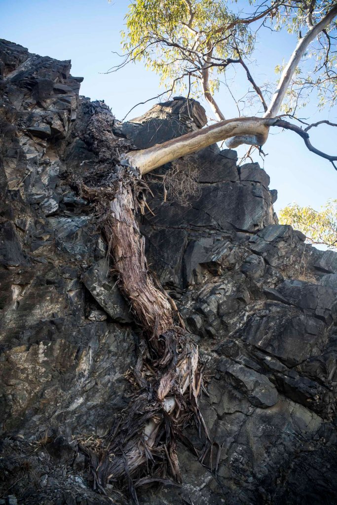 The camel trek was at the end of a decade long drought and the country was very dry: there was no water in the creeks or in the water holes, and there were dead animals everywhere. Walking the country turned out to be spending a large amount of the time walking along the dried out bed of the Hamilton Creek, which flowed north east along the western side of the Mawson Plateau.