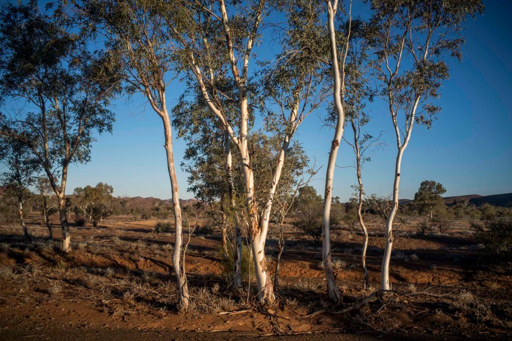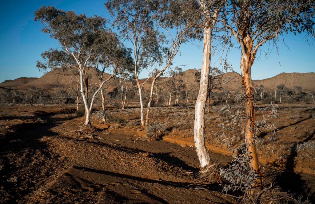 We camped the night of the 2nd day on 3rd plain between two range of hills. I photographed along a creek bed in the late afternoon and then in the following morning. Most of the photographic subject matter on day 2 consisted of creek beds and river gums with some melaleuca. The vegetation on the two plains was wattle (accacia victoria). It was a similar weathered landscape to that of our 1st camel trek to Mt Hopeless, though it was not as dry due to the monsoonal rains in January. This had cleaned the creekbeds out, but there was no water in them.