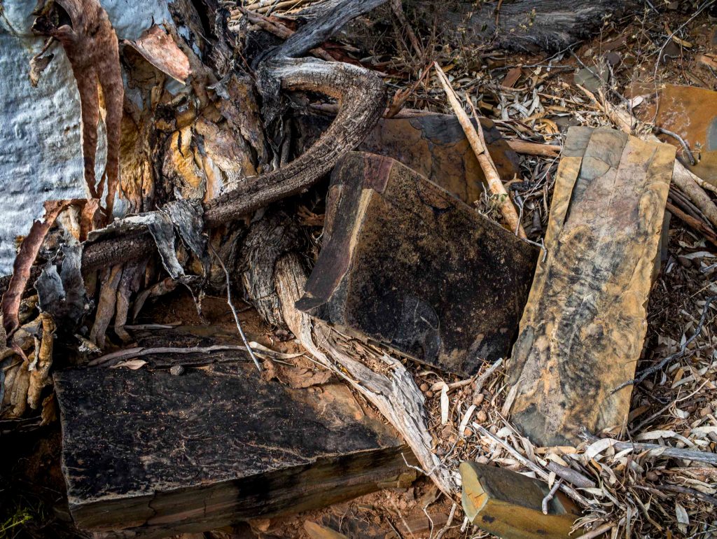 Another myth is the sense of being the first person in this space. As I walked through this landscape I imagined human beings living and hunting megafuna, (eg., the Diprotodon) as well as different types of wallaby on the plains. and taking their kill back to their shelters in the ranges. We know that people had started spreading throughout the Australian continent — or more accurately the supercontinent of ‘Sahul’ that originally united Tasmania, Australia and New Guinea — around 50,000 years ago. The subsequent archaelogical excavations of the Warratyi rock shelter in the northern Flinders Ranges, adjacent to the Gammon Ranges that was discovered by Giles Hamm and Adnyamathanha elder Clifford Coulthard, indicated that people were living in the Flinders Ranges 45-49,000 years ago.