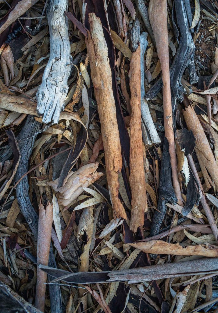 The following morning (Day 9, 29th/5) we continued to walking through the gorge to its north eastern end. We had our lunch just outside the entrance of the gorge. I photographed the bark of river gums that was lying on the ground at the foot of the trees — photographs of the accidents of the bush in an ordinary place that was encountered by chance in an ever changing landscape. This approach shows the intricacies of this region’s ecology.