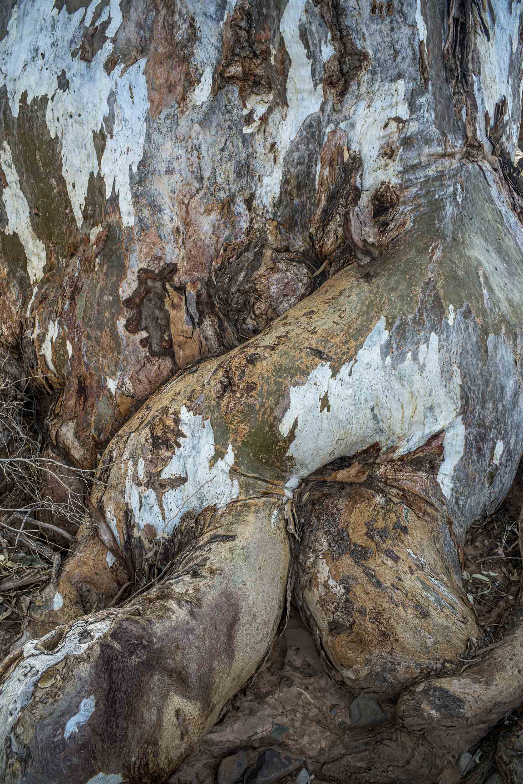 I photographed the trunks of the river gums as abstracts to avoid the tourist representations of the Flinders Ranges as well as those in the commercial art market. Abstracts that show the colour and form of the bush itself, and in doing so shows the value of the bush from the perspective of walking in it.
