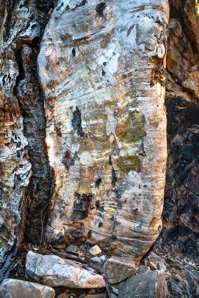 We didn’t bother to walk around the hill and explore the gorge from the opposite end. Instead we returned to the group of red gums at the entrance to the gorge that were nourished by the Mt McKinsey Spring in the lower part of the gorge.
