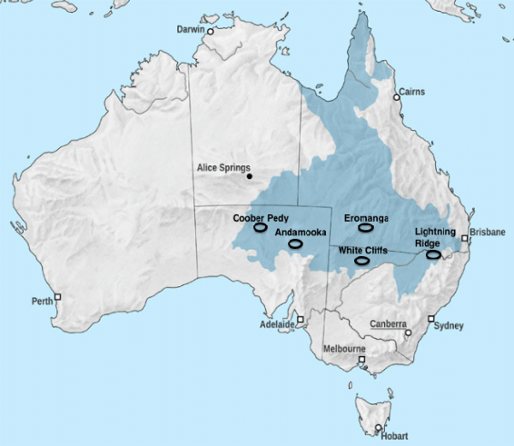 The Eromanga Sea was a shallow cool, muddy and stagnant sea that covered what is now arid inland Australia during the early Cretaceous (120 million years ago). It vanished about 95 million years ago leaving behind an uplifted landscape of wetlands and deltas that would eventually dry out and become scrubland. Opals are one of the Eromanga sea’s legacies.